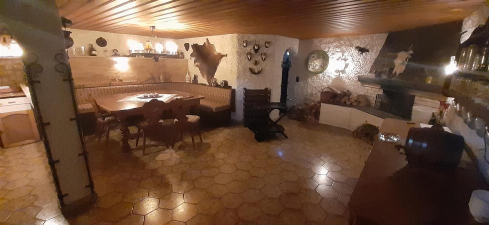 Küche, Wohnzimmer, Bad mit WC, 2 Schlafzimmer, Kellerstüberl, Billardraum, Sauna, Terrasse usw. 2 Garagen, ein nettes Gartenhaus und ein schöner großer Garten.
